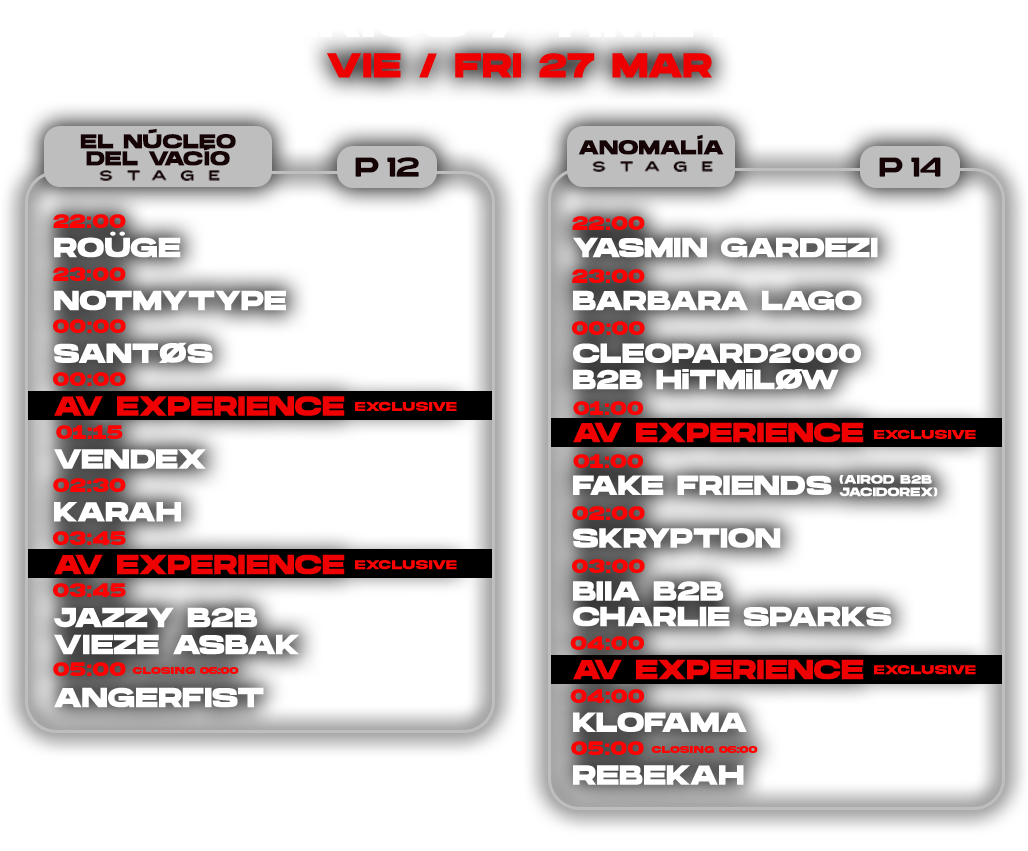 6EJOU LIVE B2B SNTS · AIDEN B2B TRIPTYKH · ANGERFIST · BARBARA LAGO · BIIA B2B CHARLIE SPARKS · CLEOPARD2000 B2B HiTMiLØW · CLTX · DEXPHASE B2B OGUZ · DYEN · FAKE FRIENDS (AIROD B2B JACIDOREX) · FERNANDA MARTINS B2B SVETEC · I HATE MODELS · JAZZY B2B VIEZE ASBAK · KARAH · KLOFAMA · KOBOSIL · LENE MA RUE · NICOLAS JULIAN B2B LEE ANN ROBERTS · NOTMYTYPE · O.B.I. · ORNELLA B2B OBSCURE SHAPE · REBEKAH · RUIZ OSC1 · SANTØS · SKRYPTION · SLIN B2B TARKNO · VENDEX · WINSON · YASMIN GARDEZI · 6EJOU LIVE B2B SNTS · AIDEN B2B TRIPTYKH · ANGERFIST · BARBARA LAGO · BIIA B2B CHARLIE SPARKS · CLEOPARD2000 B2B HiTMiLØW · CLTX · DEXPHASE B2B OGUZ · DYEN · FAKE FRIENDS (AIROD B2B JACIDOREX) · FERNANDA MARTINS B2B SVETEC · I HATE MODELS · JAZZY B2B VIEZE ASBAK · KARAH · KLOFAMA · KOBOSIL · LENE MA RUE · NICOLAS JULIAN B2B LEE ANN ROBERTS · NOTMYTYPE · O.B.I. · ORNELLA B2B OBSCURE SHAPE · REBEKAH · RUIZ OSC1 · SANTØS · SKRYPTION · SLIN B2B TARKNO · VENDEX · WINSON · YASMIN GARDEZI ·