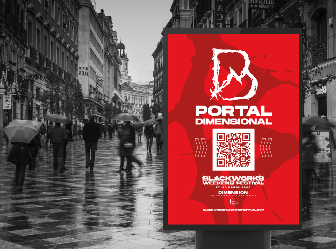 Como parte del lanzamiento de Blackworks Dimension, hemos activado una campaña especial de street marketing en Madrid a través de una experiencia interactiva que conecta el mundo físico con el universo digital del festival.